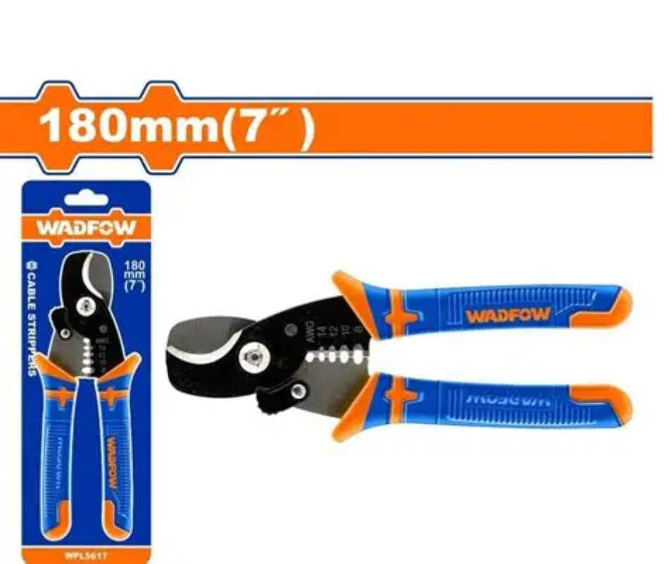 Multi-purpose wire stripper and cutter designed for stripping insulation and cutting electrical wires accurately. Features sharp blades and comfortable, non-slip handles.